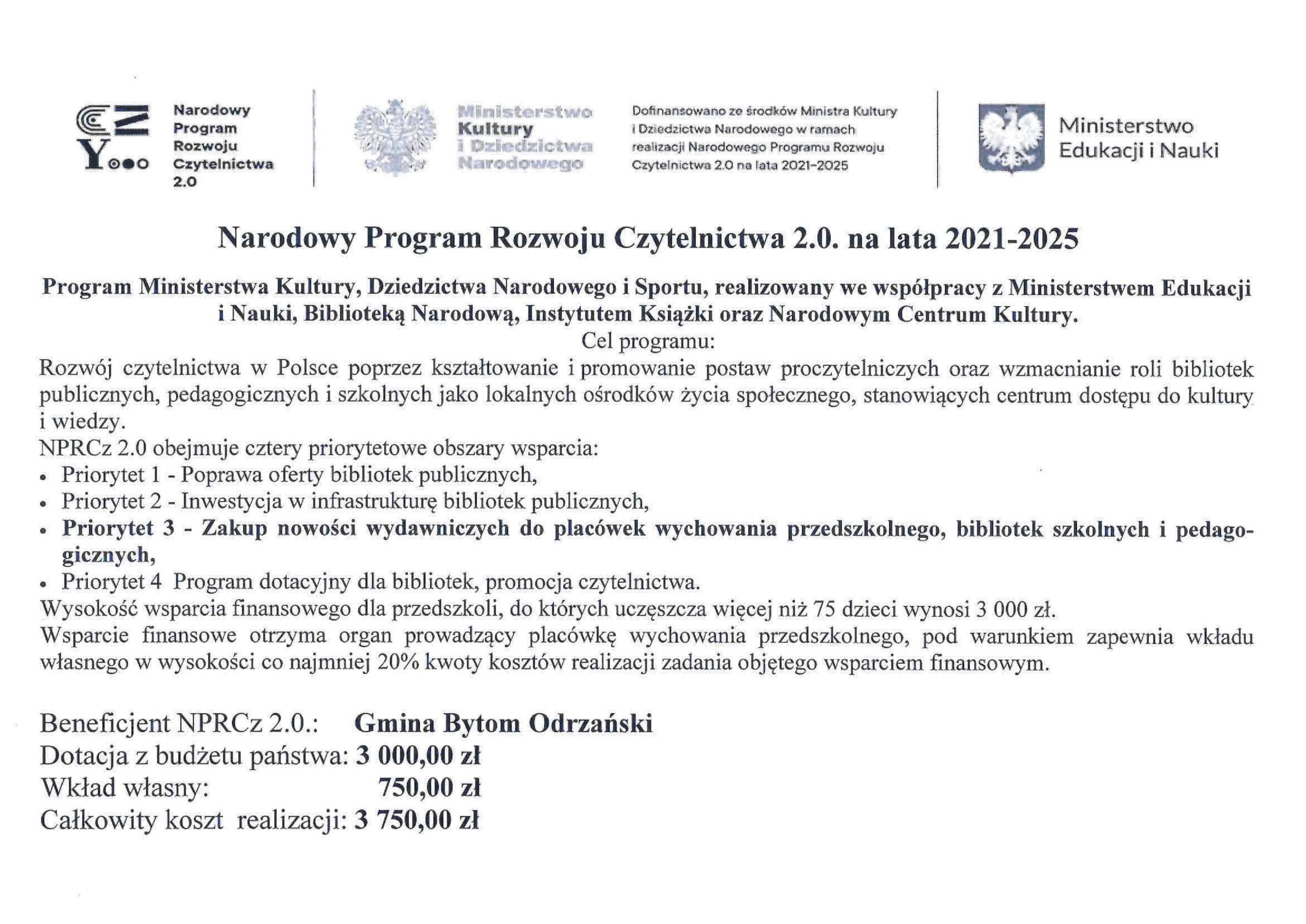 Dofinansowanie w ramach Priorytetu 3 „Narodowego Programu Rozwoju Czytelnictwa 2.0. na lata 2021-2025”