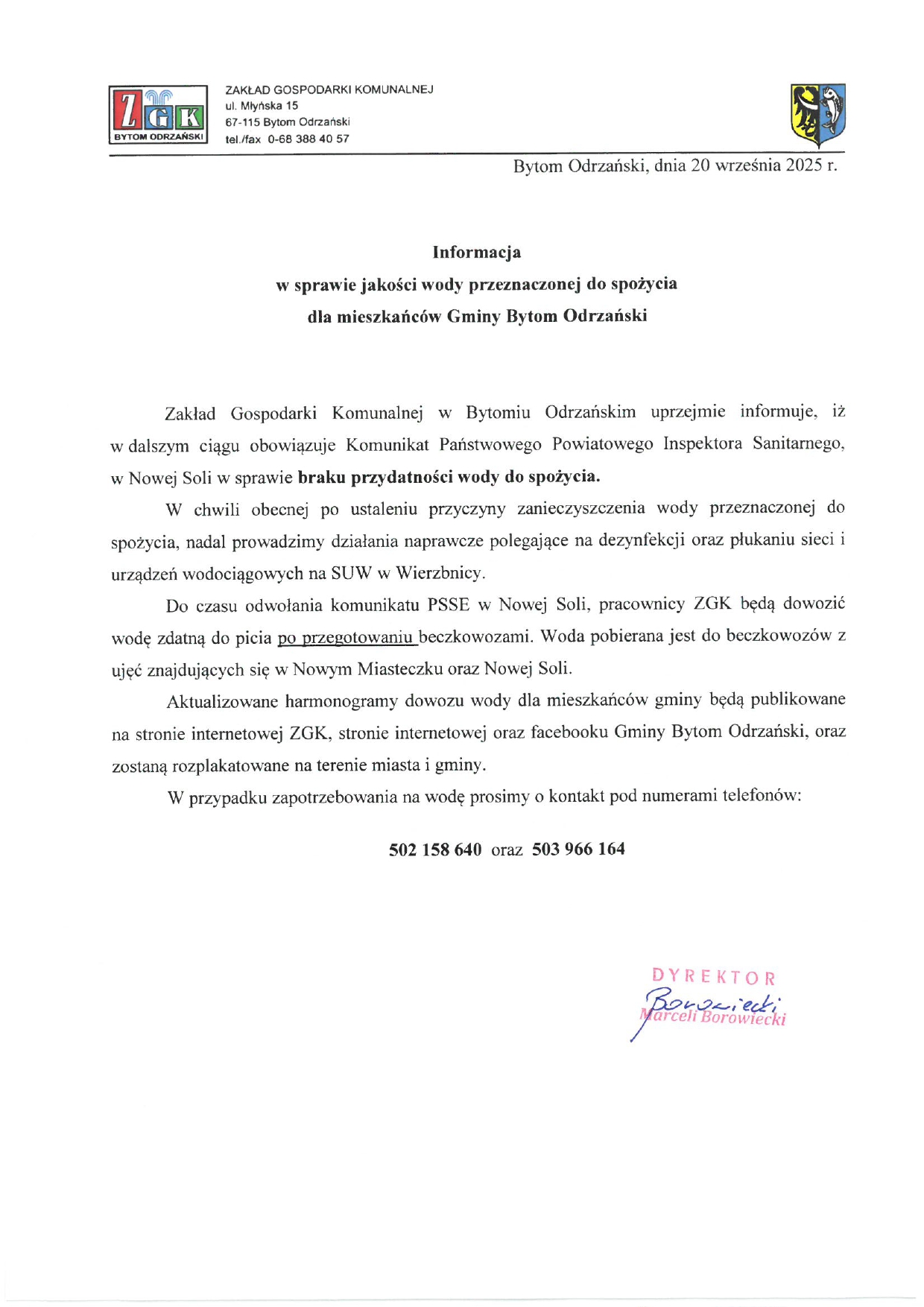 Informacja dla mieszkańców w sprawie przydatności wody do spożycia Tomek Chmielewski2025-09-20T15:41:38+02:002025-09-20|Aktualności| Udostępnij FacebookTwitterLinkedInWhatsAppEmail