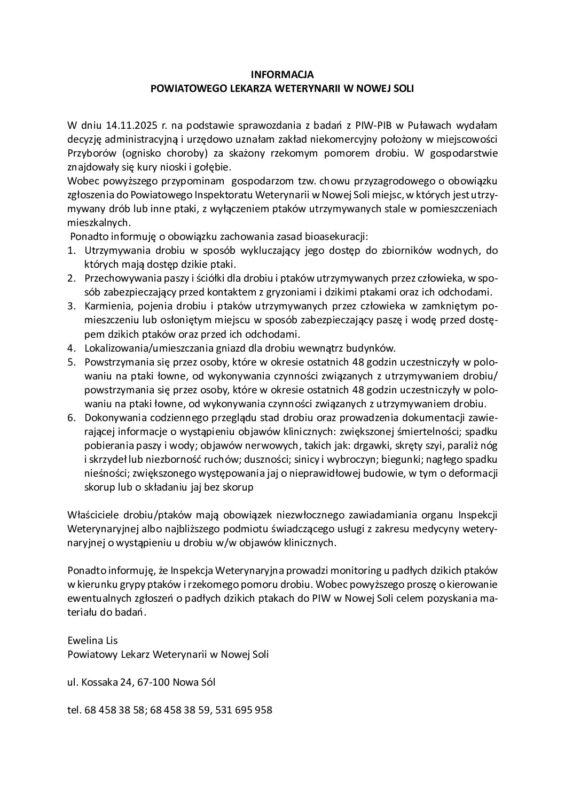 Informacja Powiatowego Lekarza Weterynarii Tomek Chmielewski2025-11-19T14:55:55+01:002025-11-19| Udostępnij FacebookTwitterLinkedInWhatsAppEmail
