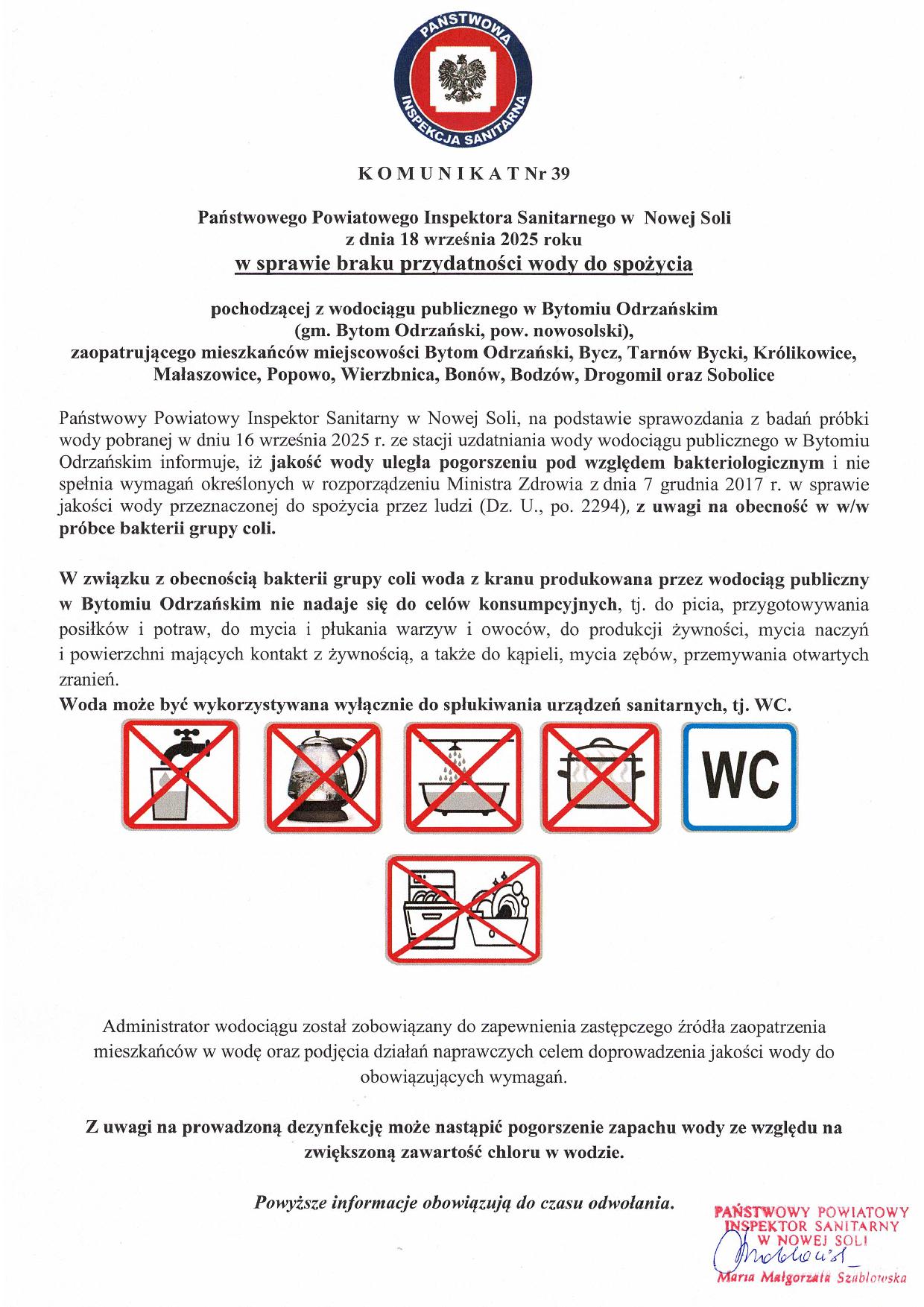 Pilny komunikat dot. jakości wody